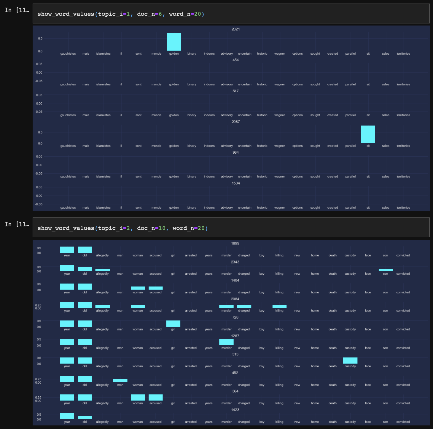 topic_2의 경우 상위 문서은 예상과 동일하게 일상에서 발생가능한 살인 범죄 등의 사건을 다루고 있다.