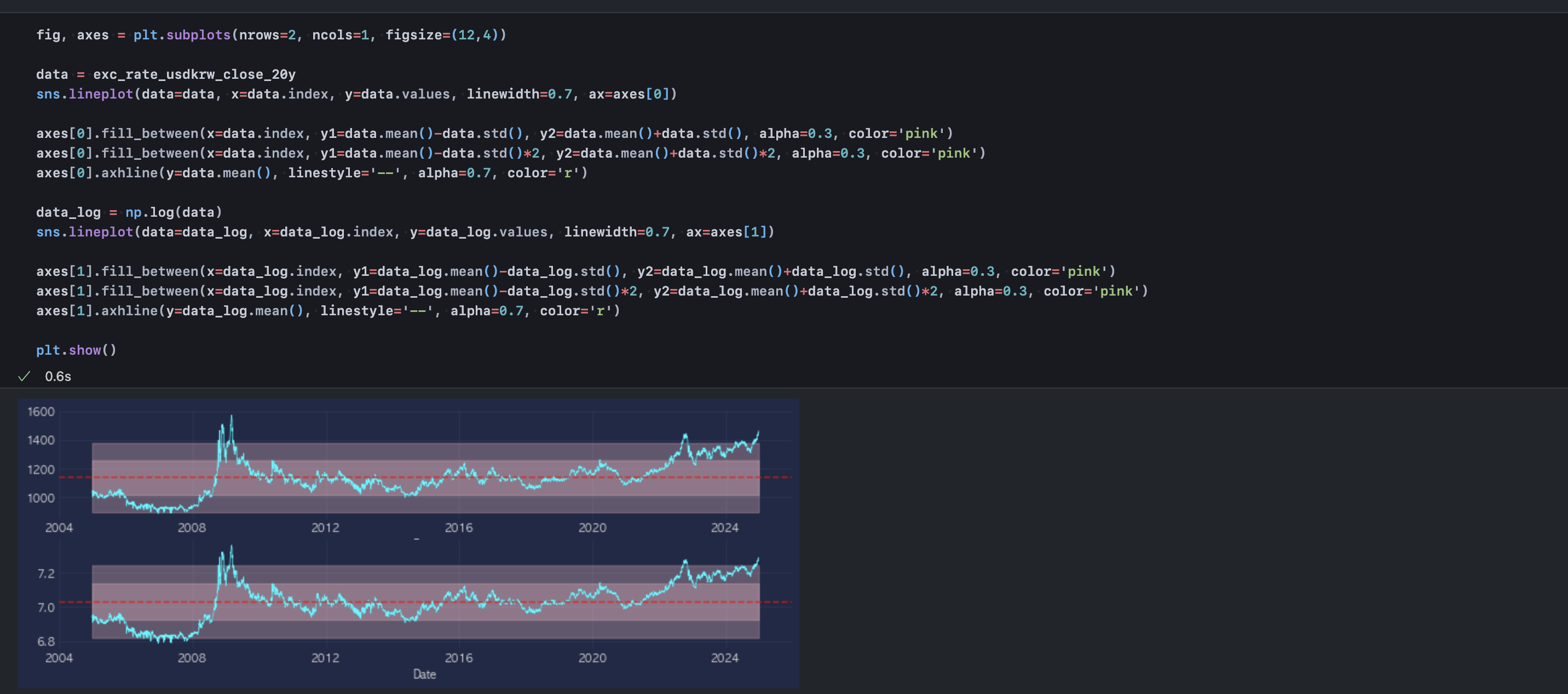 자산 가격의 시계열 데이터는 지수적 증감이 있기 때문에 이를 직접 비교할 경우 시각적 착시가 발생할 수 있다. 따라서 로그 변환을 통해 증가율(%) 해석이 가능하도록 전처리한다.